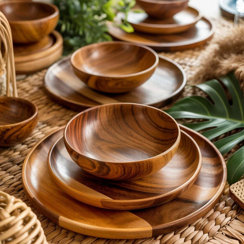 5. Handcrafted Mango Wood Tableware, unexpected grain