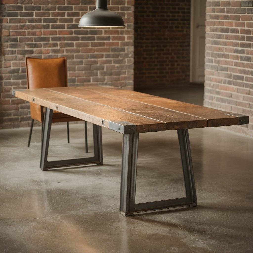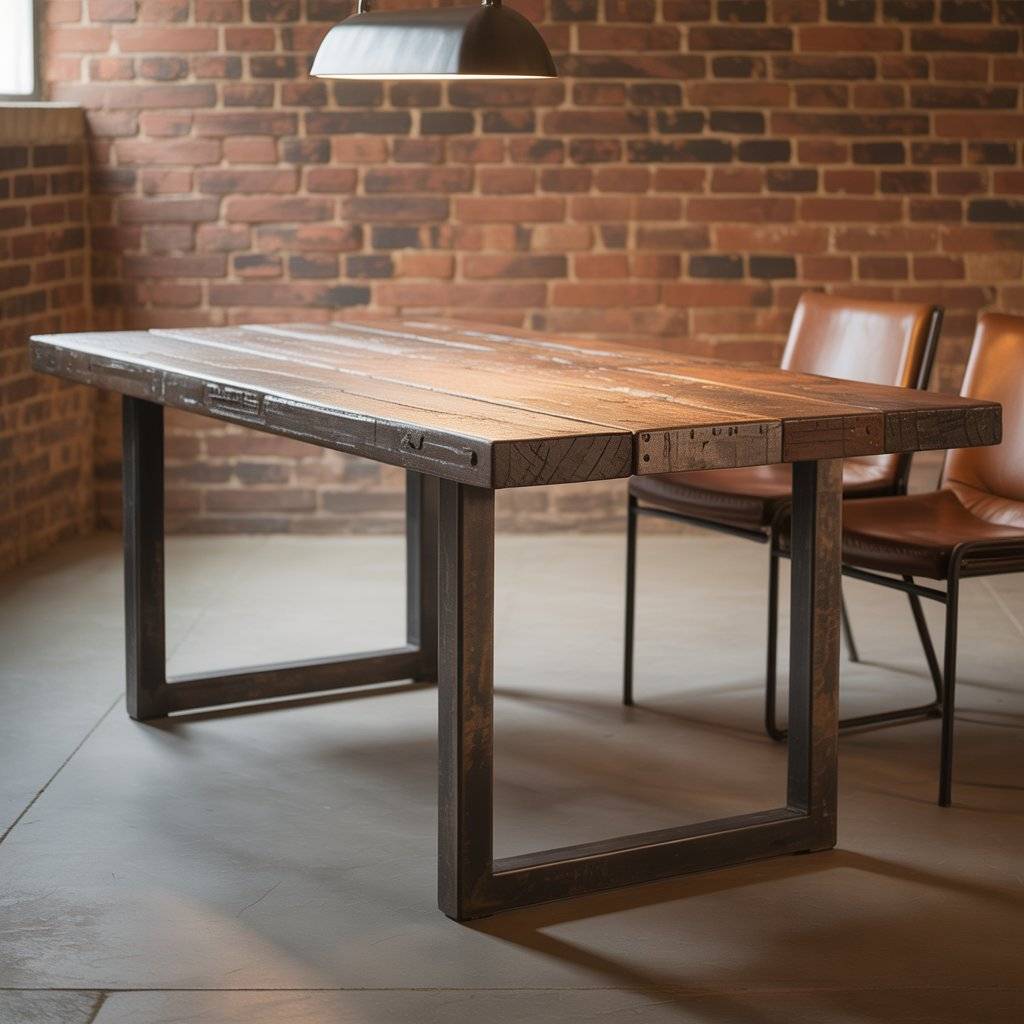 Wood paired with a steel frame gives you something sturdy, modern, and a little raw. Think solid plank top on blackened steel legs: it’s practical for heavy use and looks great against exposed brick or concrete.