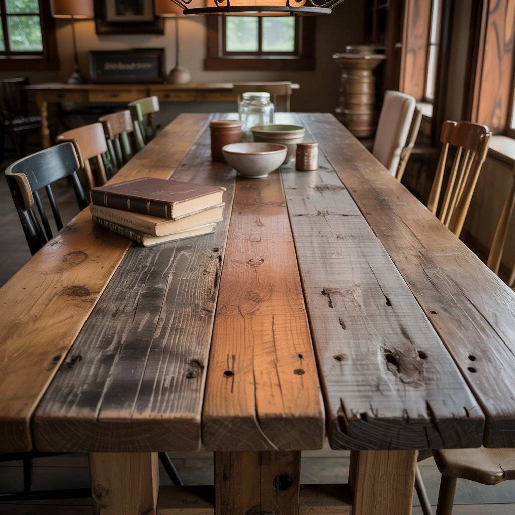 2. Reclaimed Barn Wood Farmhouse Tableful of history