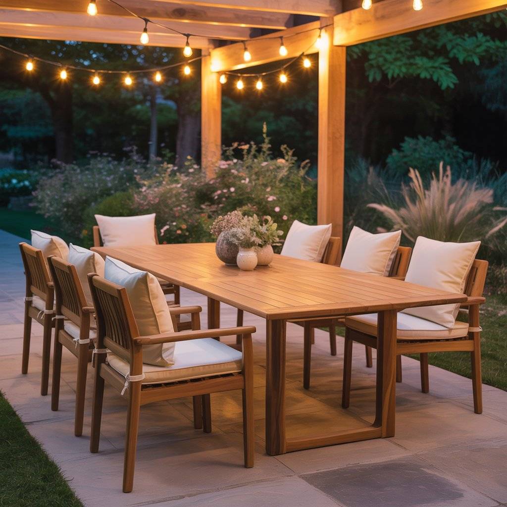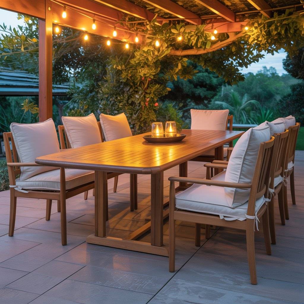 If you want a table that can live outdoors and still look gorgeous, teak is hard to beat. It’s oily and weather-resistant, so it weathers gracefully to a soft silver if you let itor you can oil it to keep the golden tone. Pair with comfortable, washable cushions and string lights for evenings that feel like a small escape.