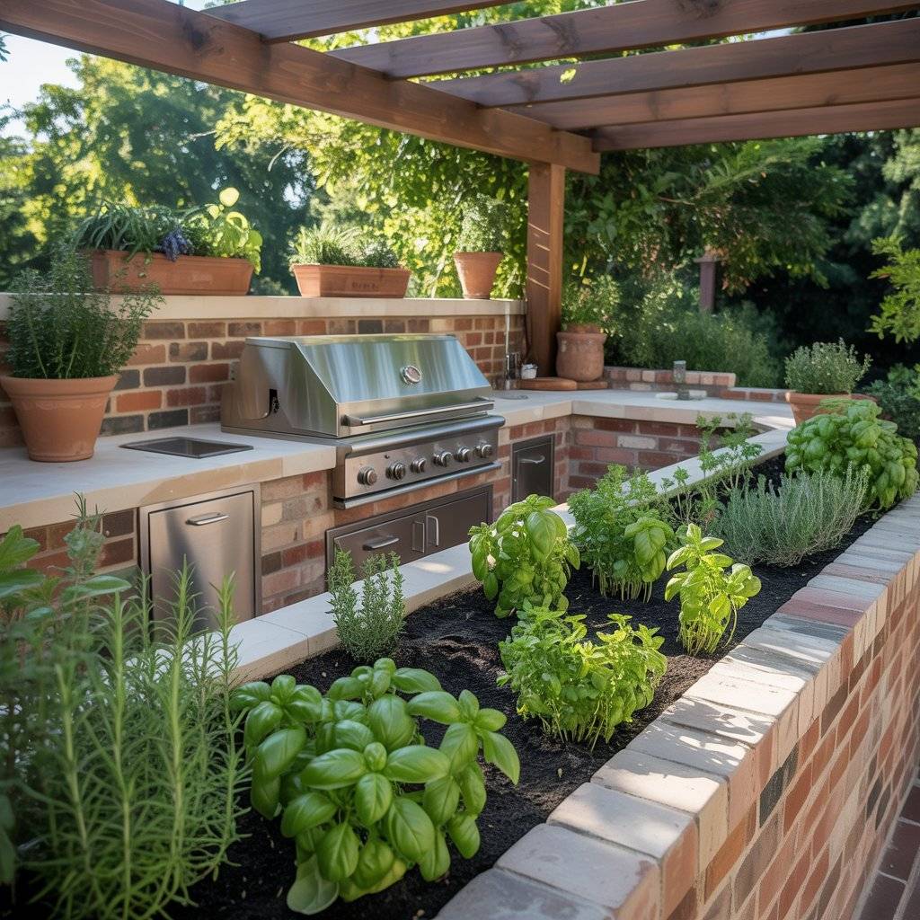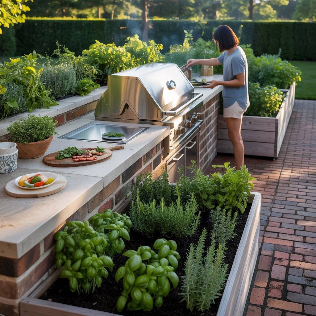 In one backyard I visited, the grill station sat next to raised garden beds filled with herbs and vegetables. The cook could step over and cut fresh rosemary or basil while preparing food. It made the whole cooking experience feel more connected to the garden.