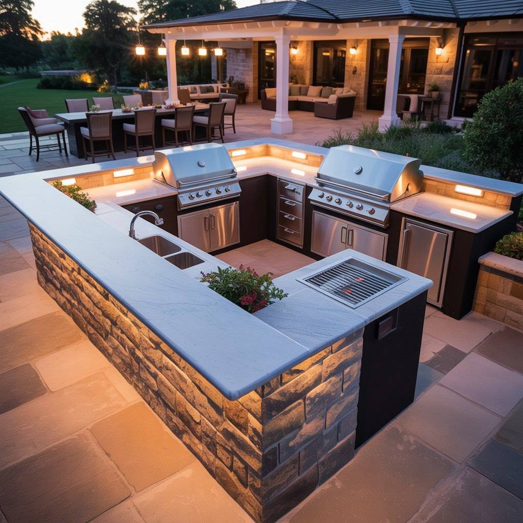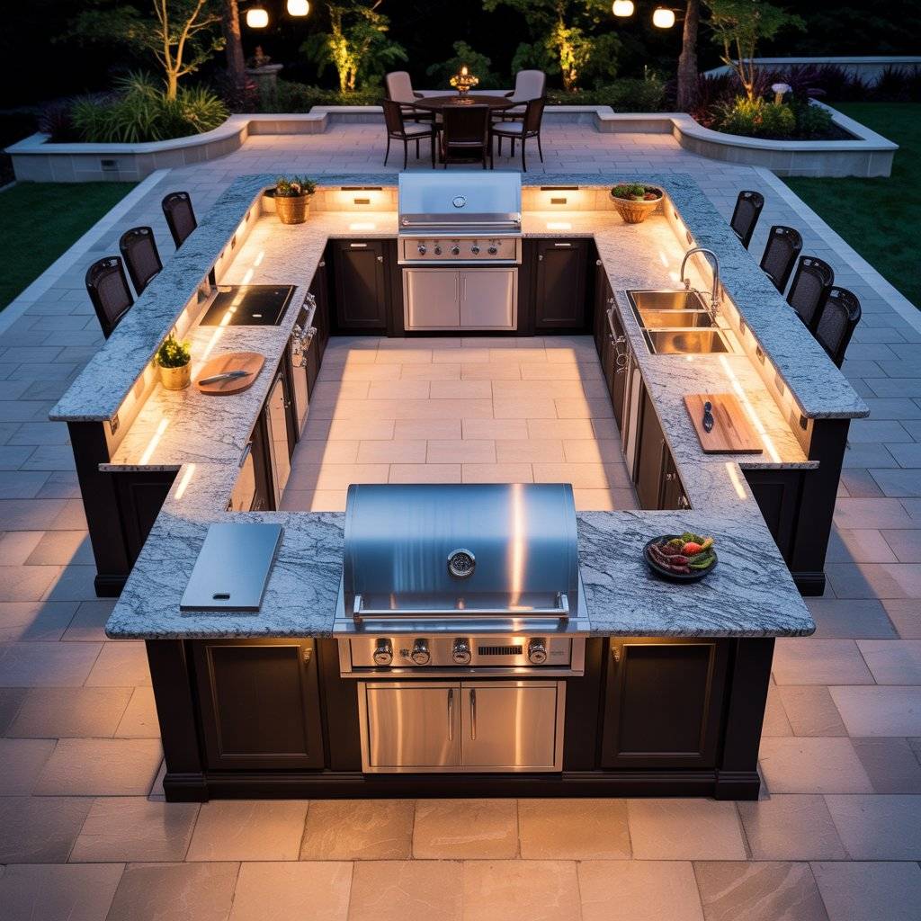 3. U-Shaped Outdoor Kitchen Layout