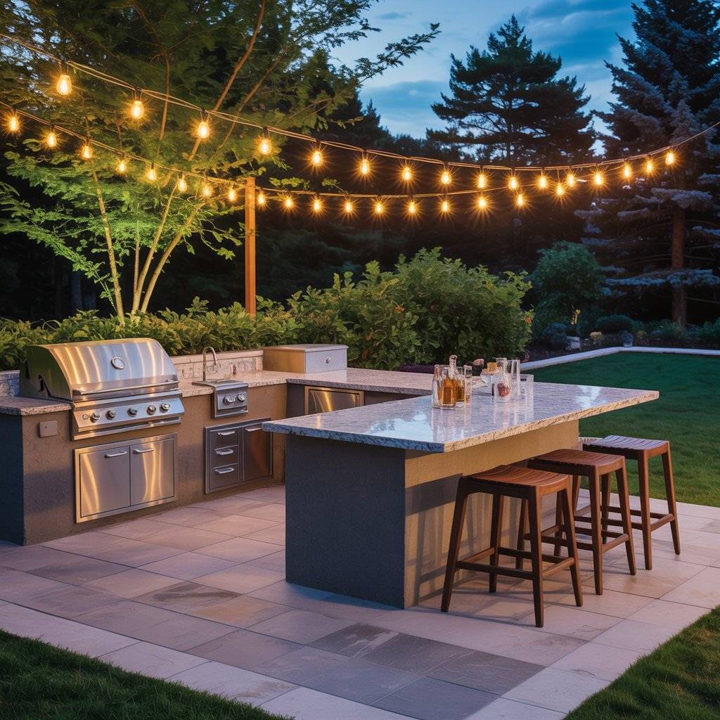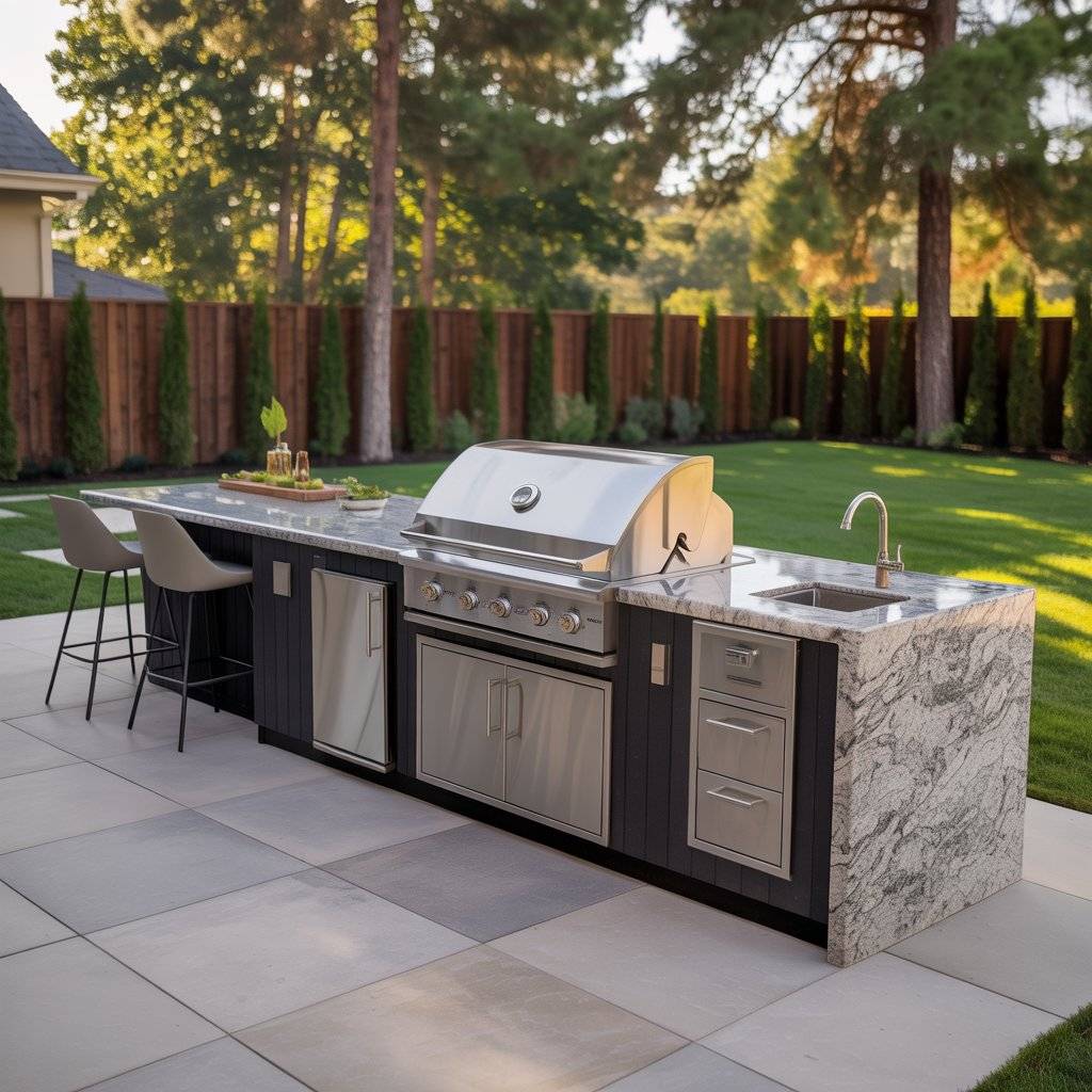 In one setup I helped plan, the grill and prep counter sat on one side, and the counter extended into a sturdy table where everyone could sit down to eat. It made the whole space feel connected. The cook didn’t have to walk across the yard carrying plates, which made serving food much easier.