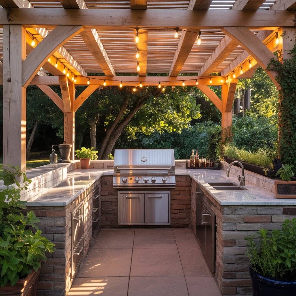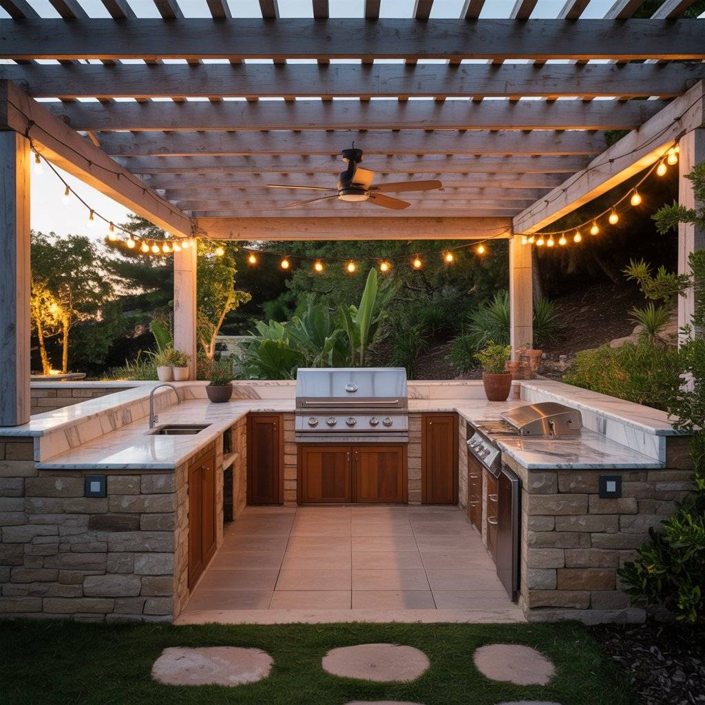 9. Pergola-Covered Outdoor Kitchen Layout