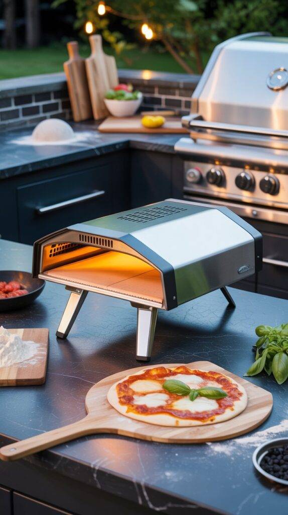In one outdoor kitchen I visited, the pizza oven sat on a prep counter next to the grill. The cook would prepare the dough on one side, add toppings, and slide it straight into the oven. It made the cooking process feel smooth and organized.