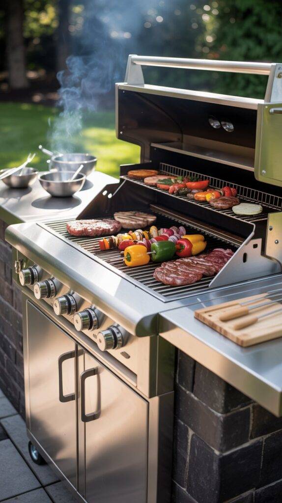 Stainless steel grills are commonly used for outdoor cooking because they distribute heat well and are built to last through regular use.