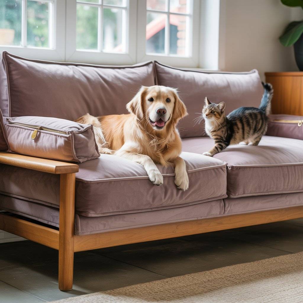 A pet sofa should be easy to live with. Removable cushions, wipeable frames, and durable fabric matter more than looks alone. Velvet cushions with removable covers make cleaning manageable.