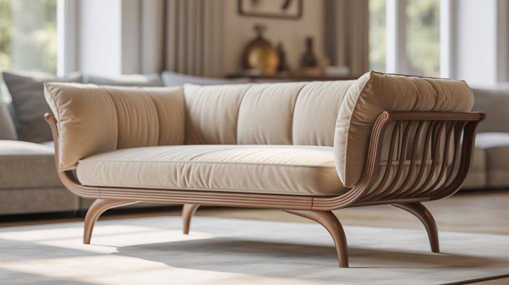 These curves also soften the look of the sofa, making it easier to blend with modern interiors. Bentwood frames feel lighter than bulky box frames, which helps keep the room visually open. This design choice works especially well in smaller living rooms.