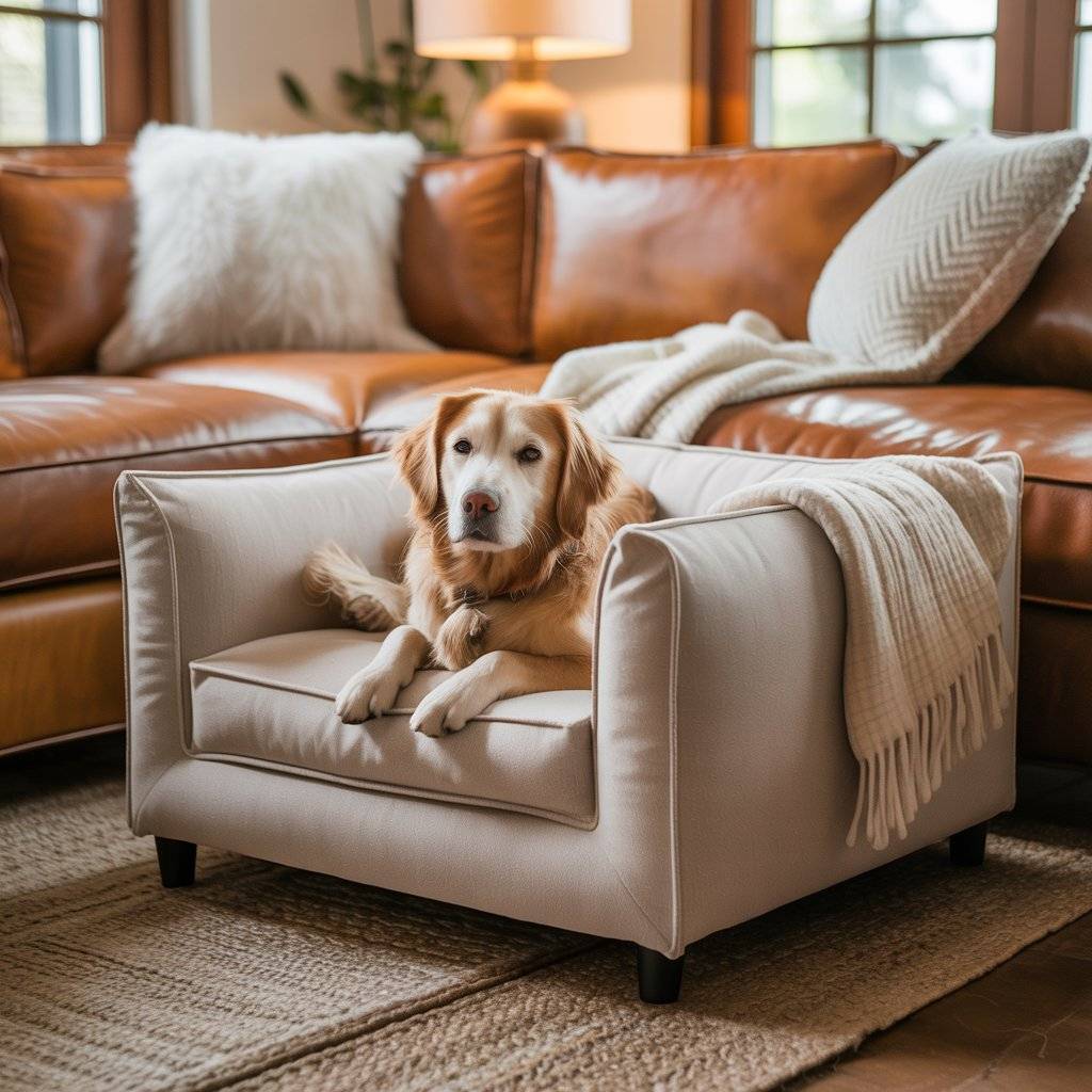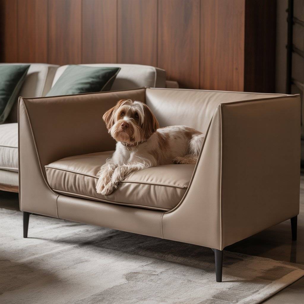 In a luxury dog bed or modern pet sofa, neutral upholstery allows the shape and materials to stand out instead of the color screaming for attention.