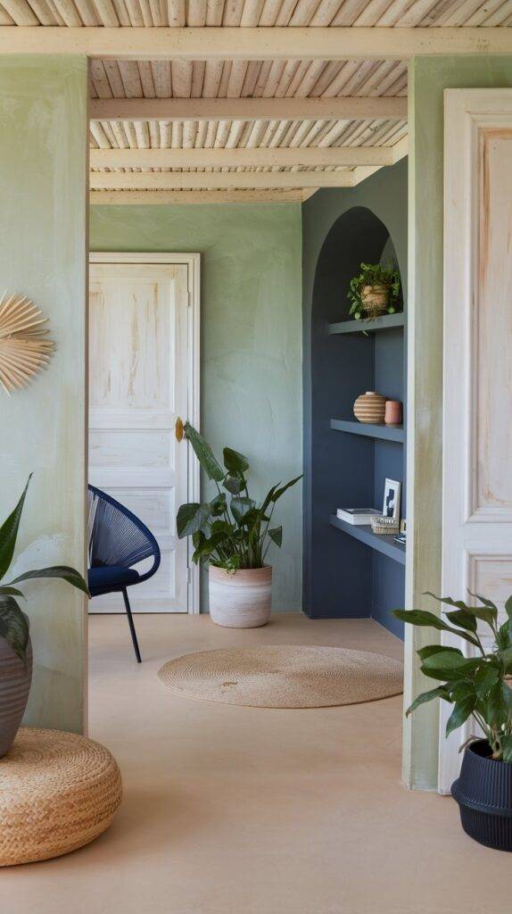 Introduce a sage green accent wall in your entryway to create a focal point that exudes tranquility. This subtle yet impactful choice can make the space feel more cohesive and inviting.