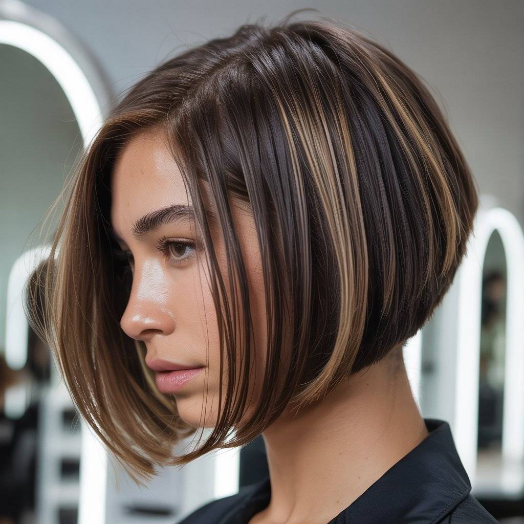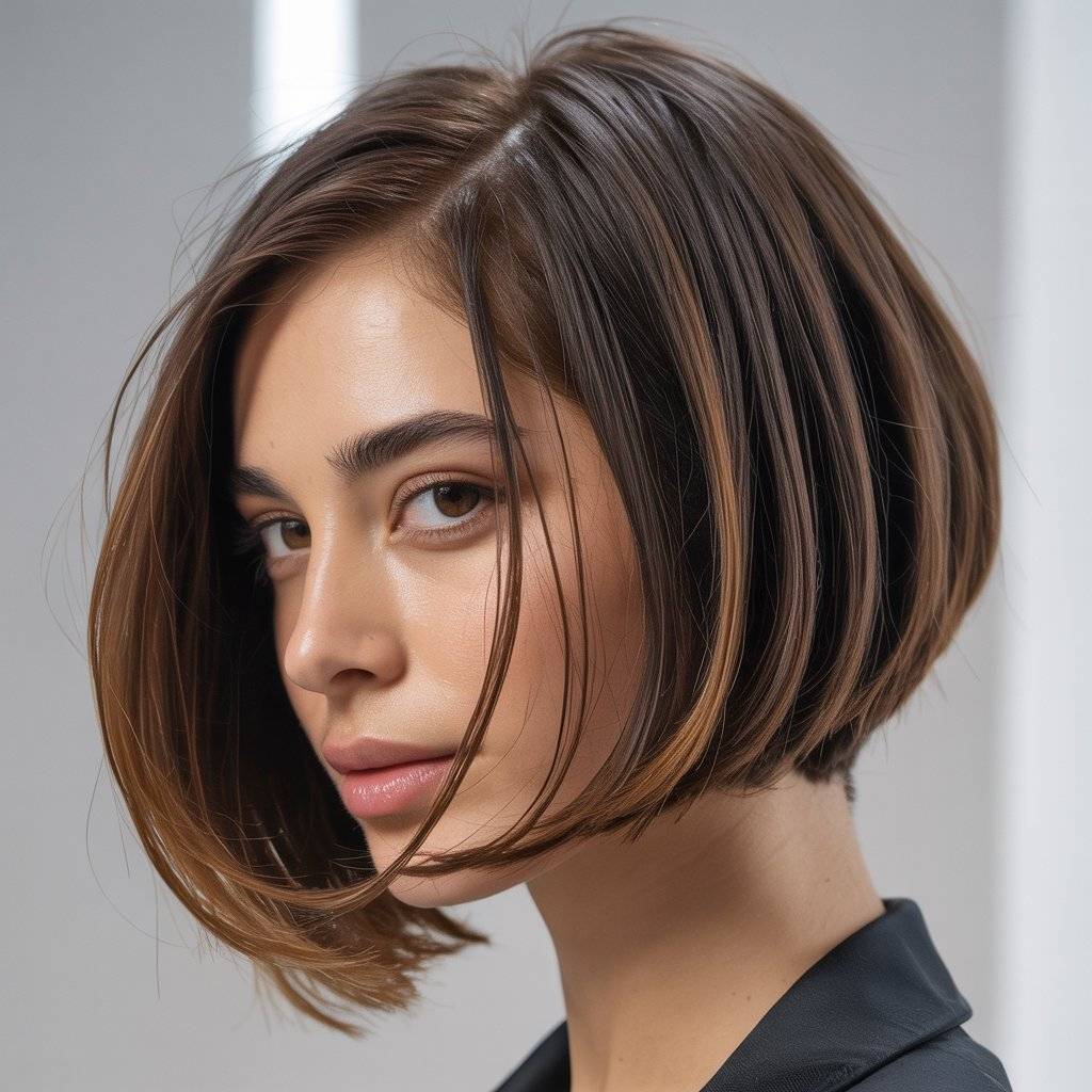 Highlights or lowlights along the longer side really enhance the shape. This cut is perfect if you want something that feels different from a regular bob but still professional and flattering.
