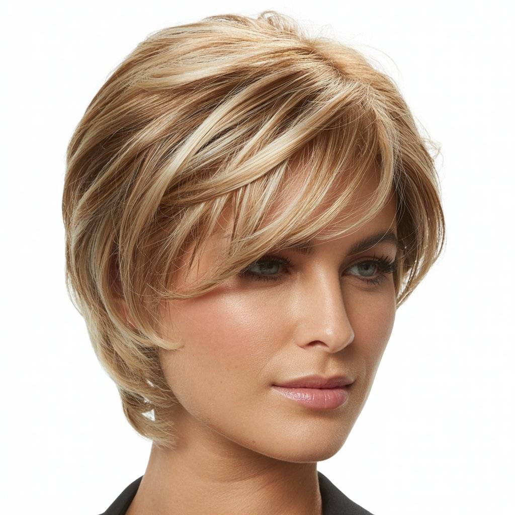 A short layered cut with bangs is one of my favorite ways to refresh a look. The layers add texture, and bangs soften the forehead. I often suggest side-swept bangs because they’re easier to maintain and look natural as hair grows out.