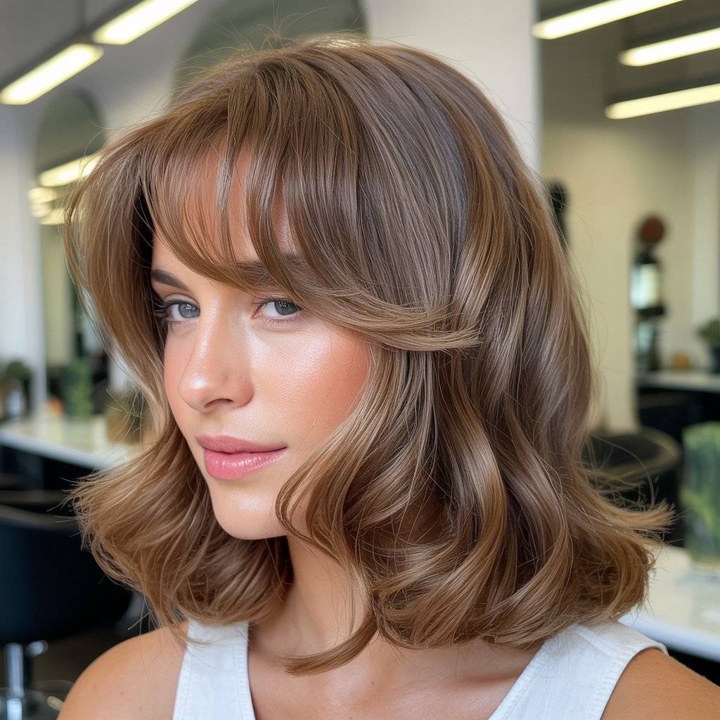 Side-swept bangs can completely change a look, even on medium-length hair. I’ve tried this on clients who wanted a small update without cutting too much length, and it really refreshed their style.