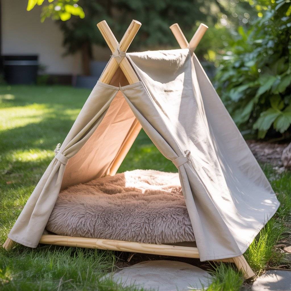 It’s a fun weekend project that gives your dog a private nook outdoors great for shy or older dogs who like some peace. The tent keeps them cool, blocks wind, and looks charming in any backyard corner.