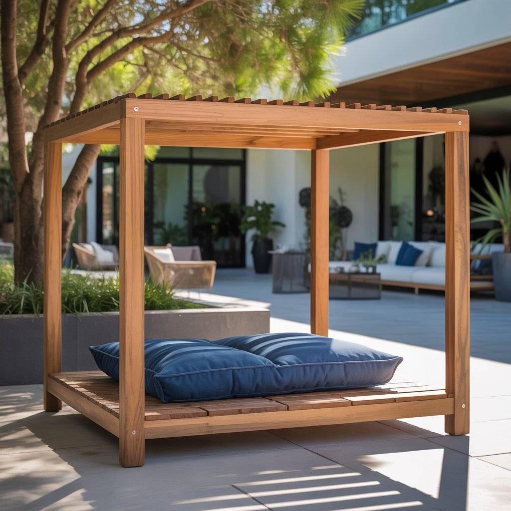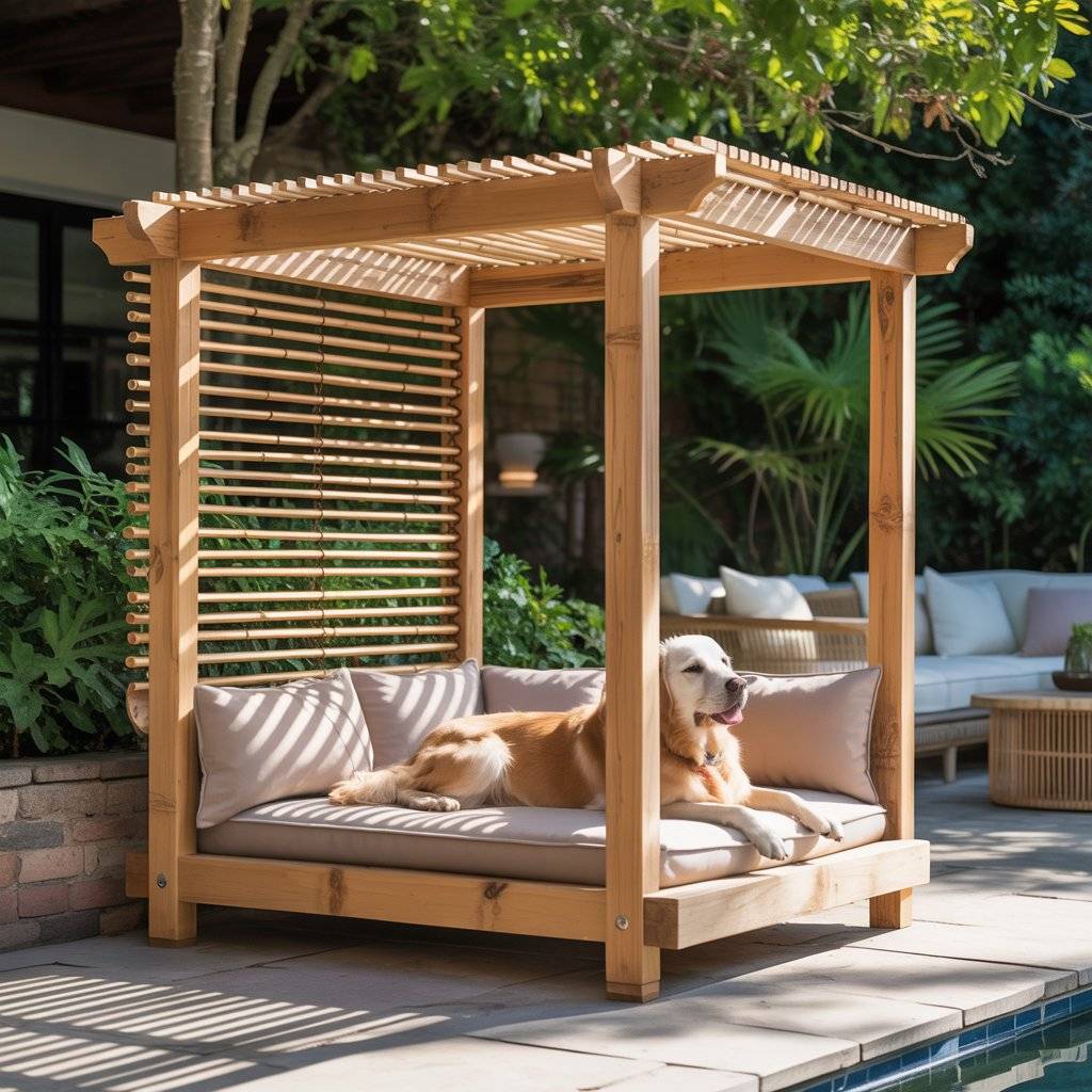 For something more architectural, a mini pergola dog bed is both striking and practical. Use small timber beams to build a simple open-frame structure, like a mini version of your backyard pergola.
