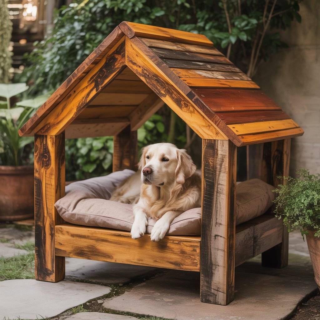 The roof gives your dog shade, while the raised base keeps it clean and dry. Pair it with a washable cushion or even an old outdoor rug folded up for comfort. It’s functional, long-lasting, and has that handmade charm that makes your space feel cozy and lived-in.