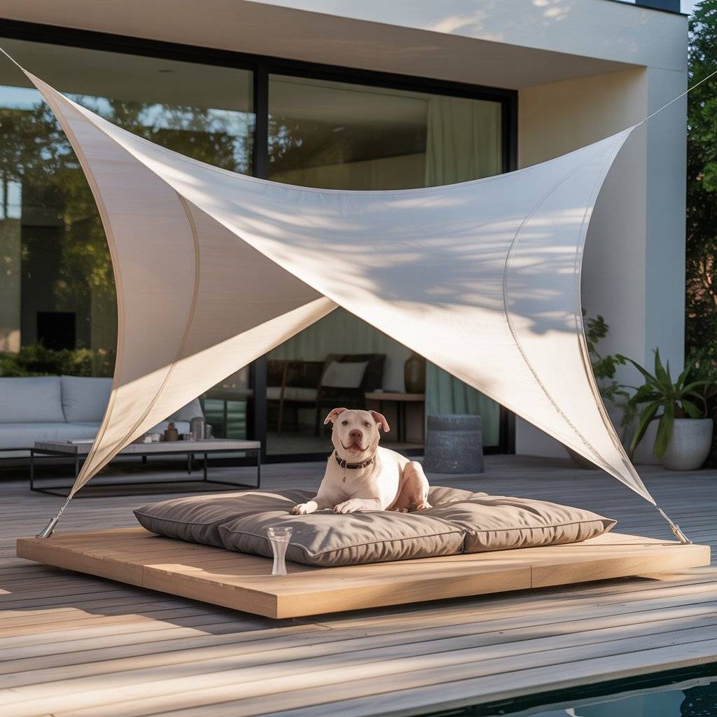 If you already have a deck or patio, try hanging a shade sail right above your dog’s favorite resting spot. You can buy ready-made sails or cut your own from UV-protective fabric.