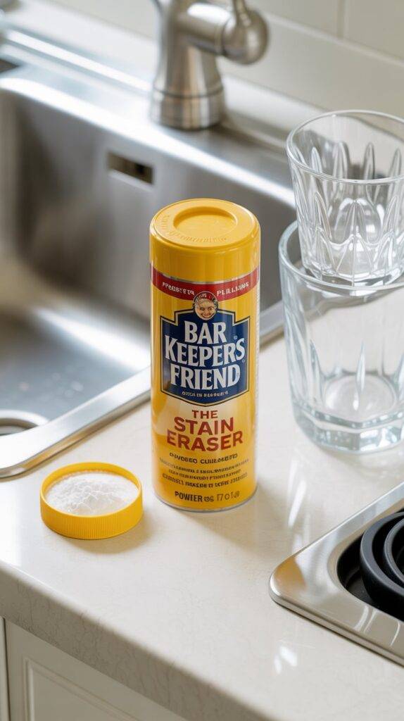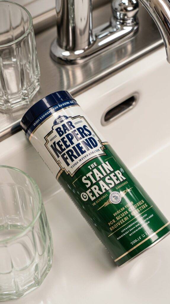 If you’ve ever struggled with hard water rings on a sink, scorched stainless steel, or cloudy glass cookware, this is the product pros reach for. It’s a mild abrasive that uses oxalic acid to dissolve mineral deposits and rust stains without harsh fumes.