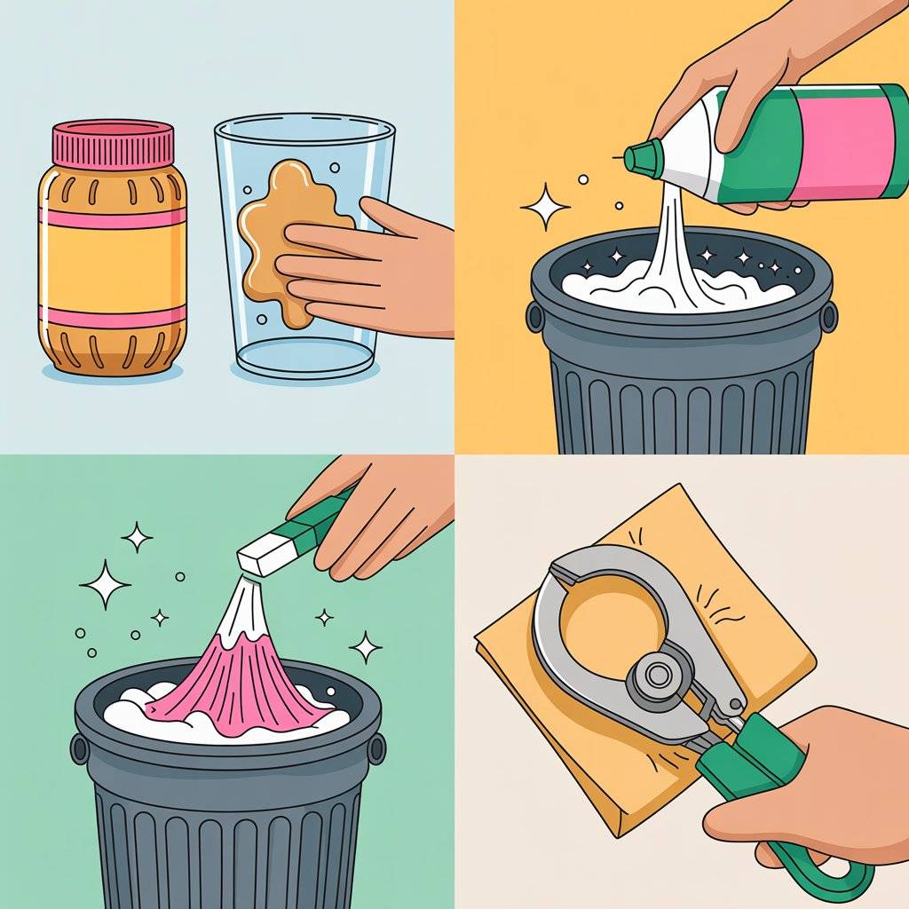 Got a sticky residue on a glass from a price tag? Reach for the peanut butter. Rub a little smooth peanut butter or toothpaste over the sticky spot, let it sit for a minute, and wipe it off with a damp cloth. The oils dissolve the glue.