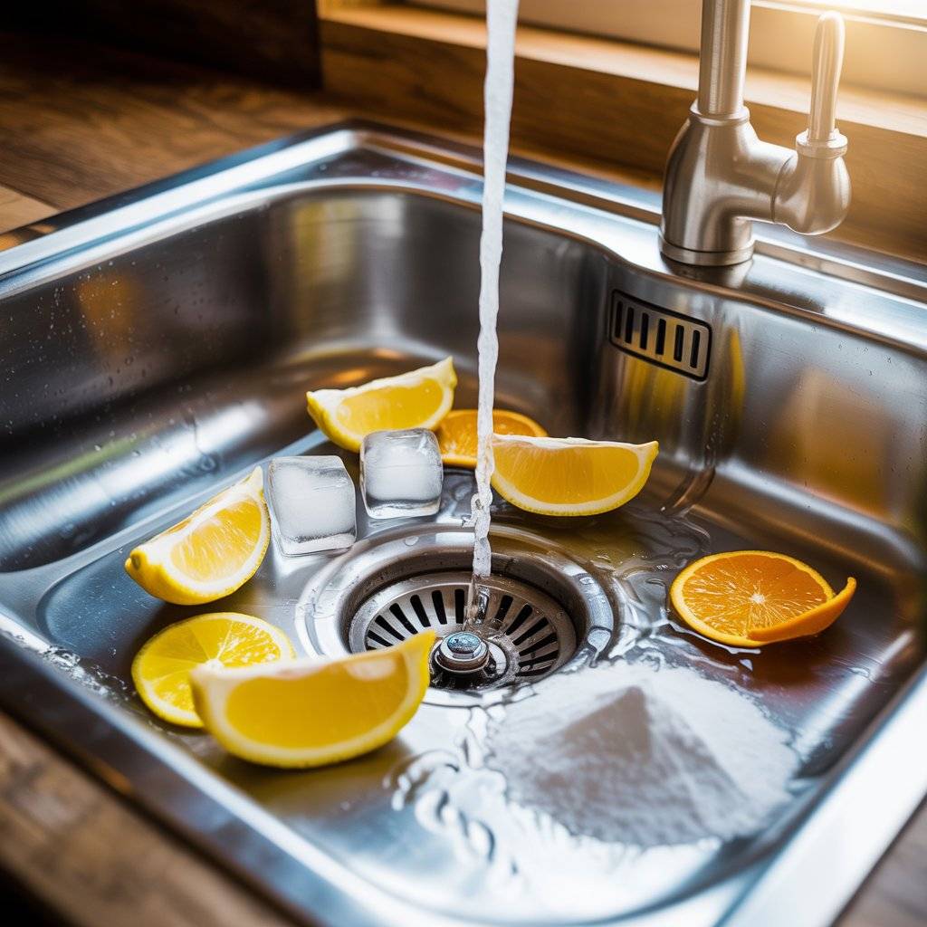 A funky smell from the sink usually traces back to the garbage disposal. The good news is you can clean it in under a minute without buying expensive tablets. Drop a handful of ice cubes into the disposal, add a few lemon wedges or orange peels, and sprinkle in a tablespoon of baking soda.