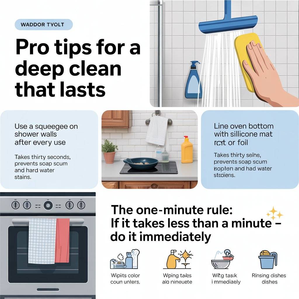 This small habit prevents messes from piling up. On weekends, you’ll spend less time cleaning and more time relaxing. Combine this with the pro tip of working from top to bottom and using the right tools, and you’ll have a home that looks spotless with way less effort. It’s not about being perfect it’s about making cleaning work for your life.