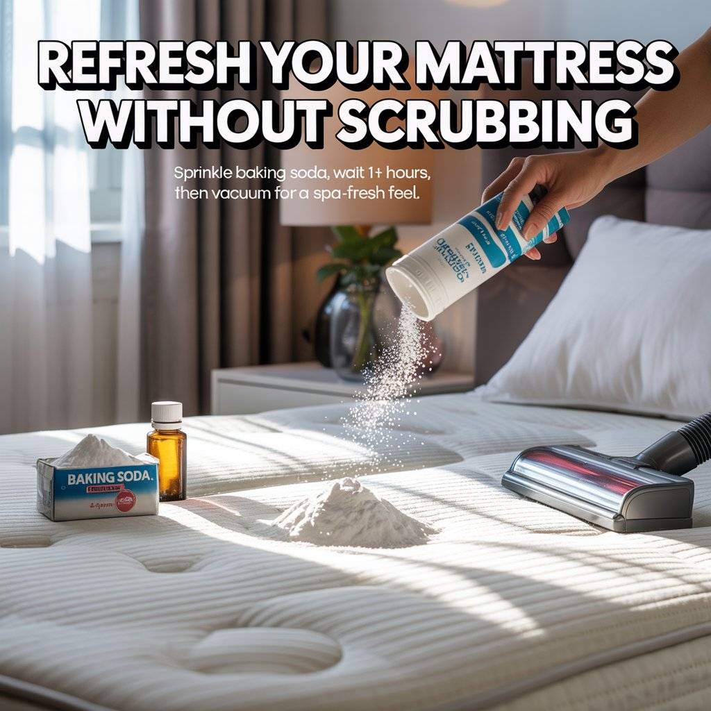 For an extra fresh scent, add a few drops of your favorite essential oil to the baking soda before you sprinkle it. This trick is non‑toxic, costs pennies, and leaves your mattress feeling like it just came back from a spa day.