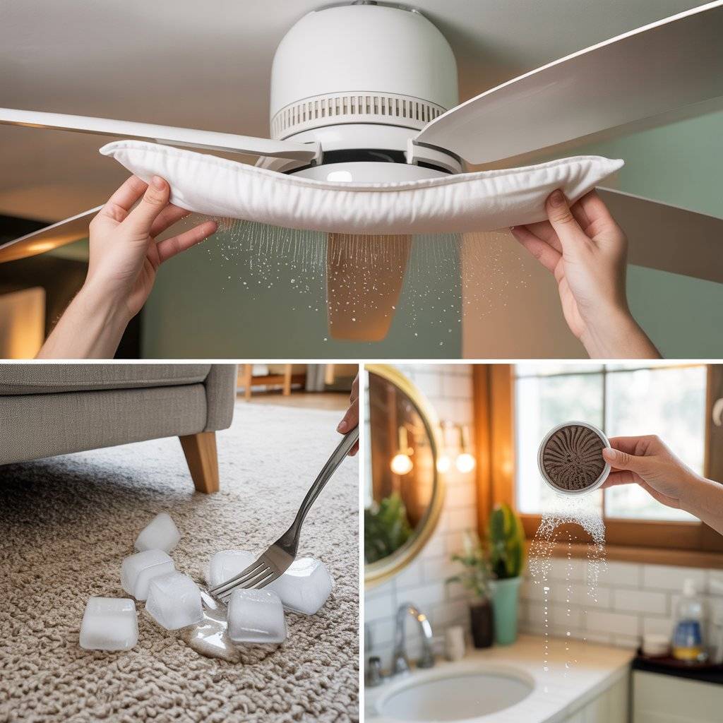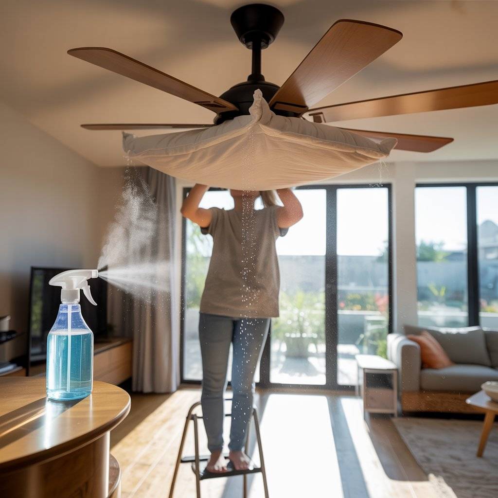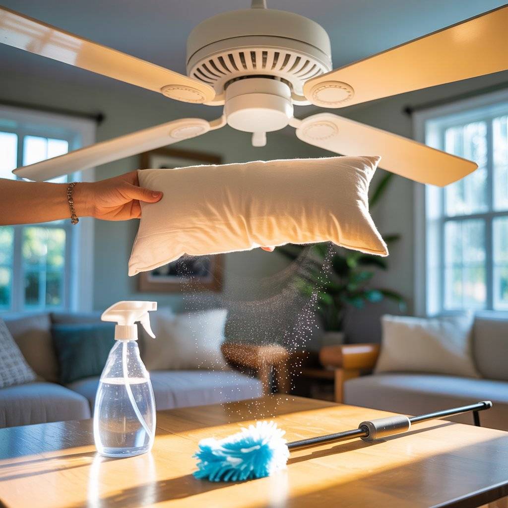 Sometimes the best hack isn’t a chemical; it’s a tool you already own. Cleaning ceiling fans usually results in dust flying everywhere. Stop the mess by sliding an old pillowcase over each fan blade. Pull the case back, and all the dust gets trapped inside the fabric instead of floating down onto your bed.