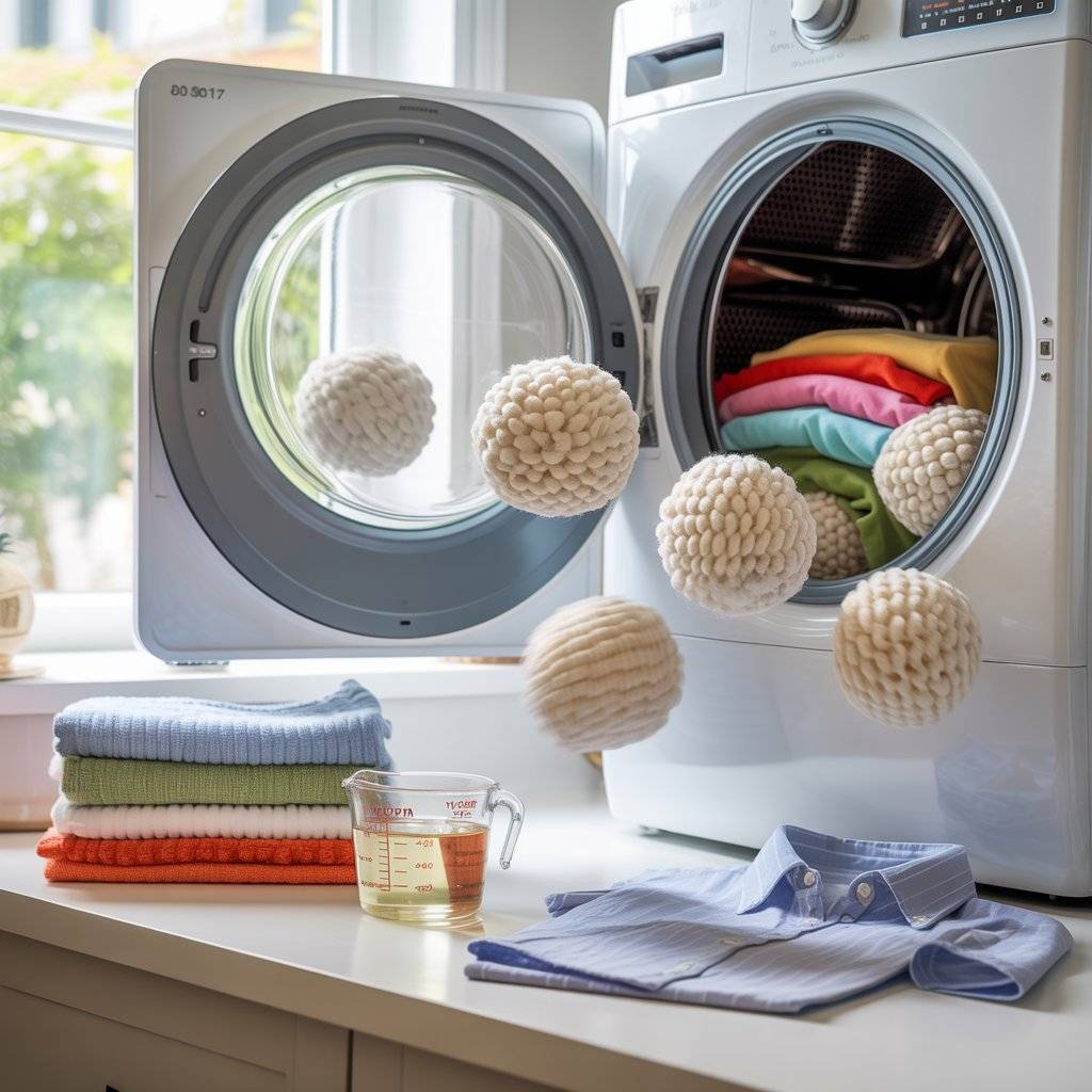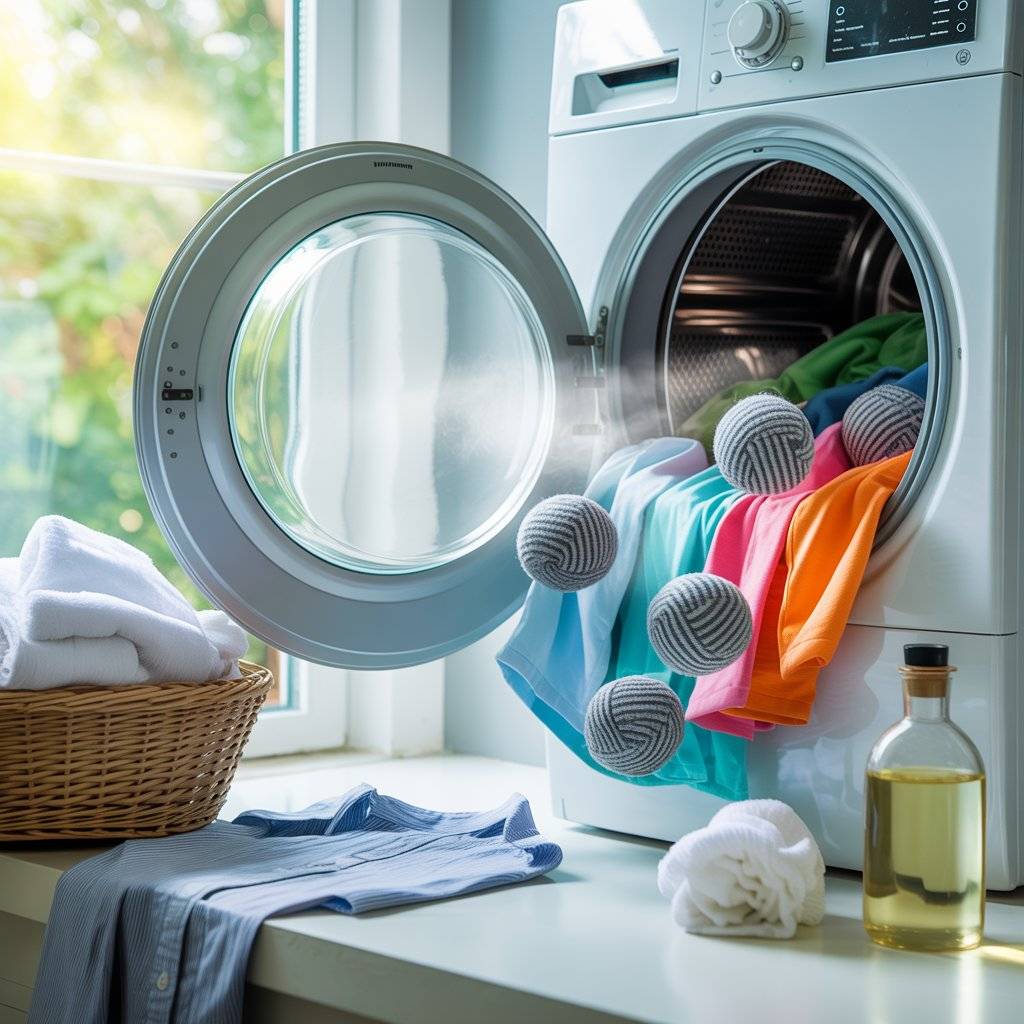 Instead, toss a couple of wool dryer balls in the dryer. They bounce around, separating the clothes so hot air circulates better. This cuts drying time by up to twenty-five percent, and they’re reusable for years.