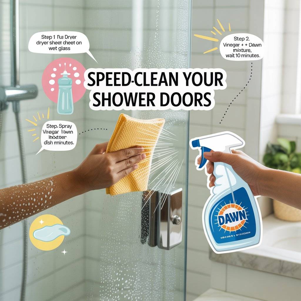 Soap scum and hard water spots on glass shower doors can make your whole bathroom look dingy. Here’s a two‑step process that works fast. First, wet the door and rub a dryer sheet over the glass. The antistatic properties help loosen the scum.