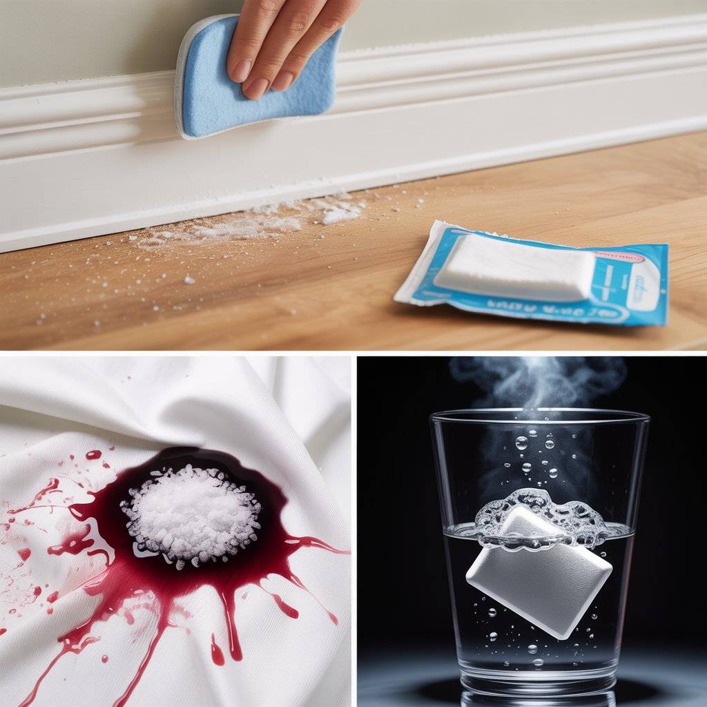 And for cleaning out a smelly vase or water bottle, drop in a denture tablet, fill with water, and let it fizz overnight. It’ll remove residue and odors without any scrubbing.