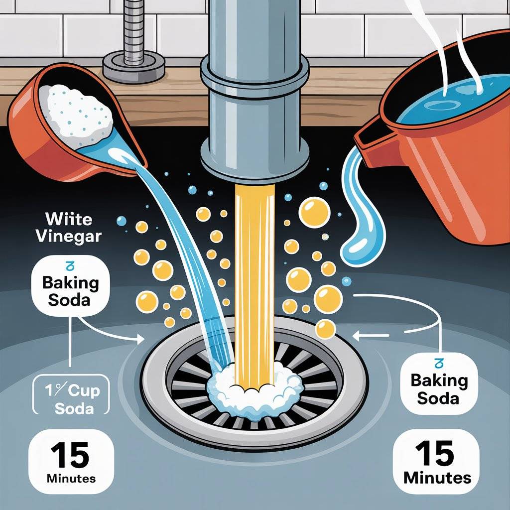 For stubborn clogs, use a drain snake or a zip‑it tool before trying the baking soda method. Regular maintenance like this keeps your pipes flowing smoothly and saves you the cost of a plumber.