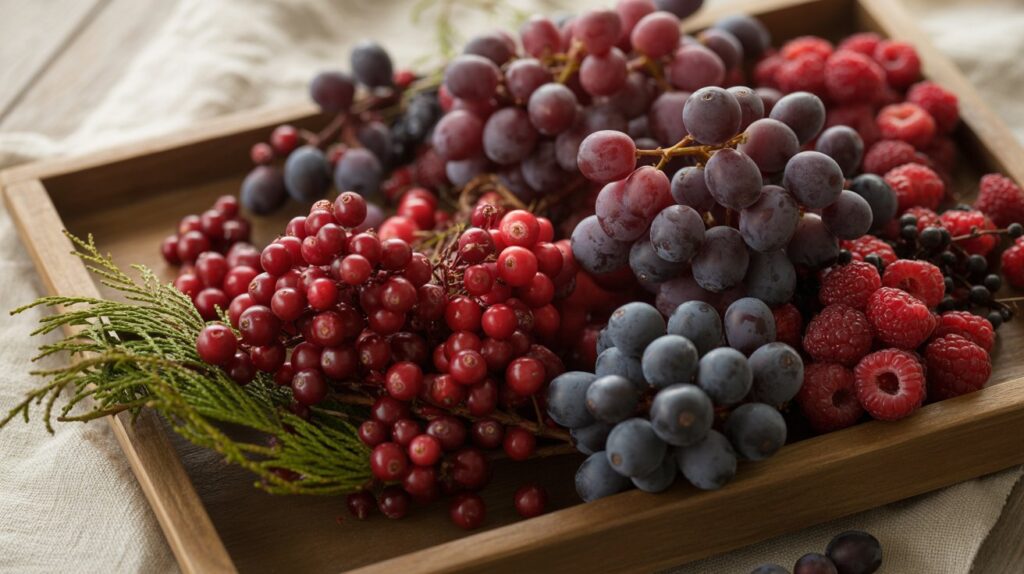 Berries always feel a bit like a treat at Christmas. Cranberries, grapes, maybe raspberries if you’ve got them. I usually put them all together on a simple tray or shallow plate.