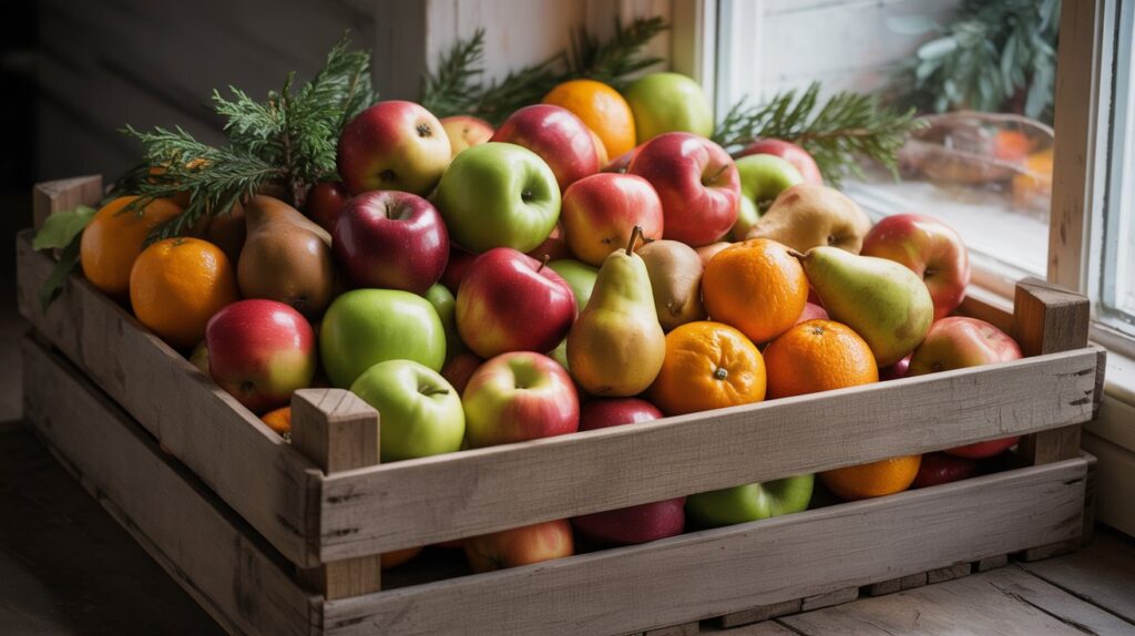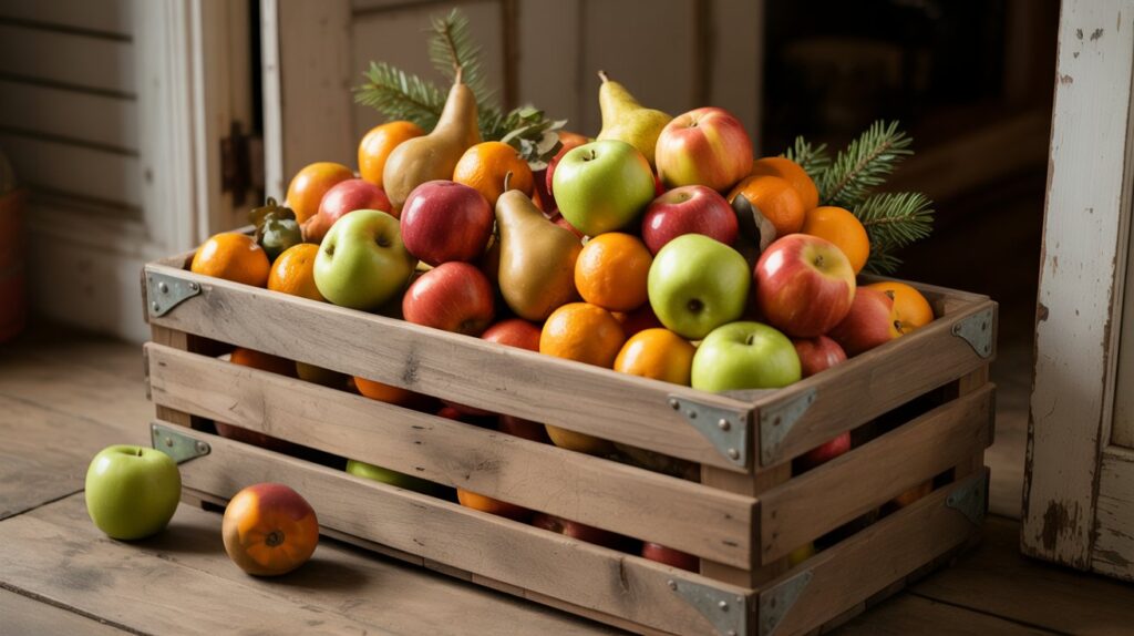 This kind of fruit arrangement doesn’t sit in one place. It moves. It lives in the kitchen, where Christmas actually happens. And because it lasts, it becomes part of the background instead of a one-day decoration.
