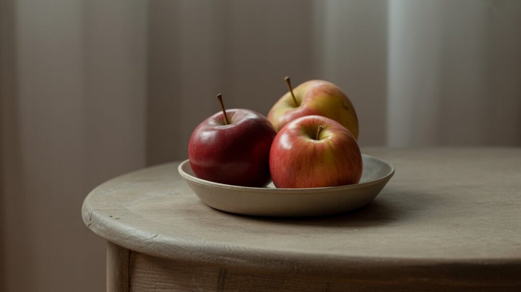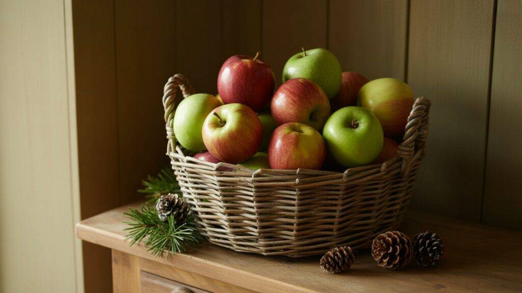 This kind of arrangement doesn’t shout for attention. It just sits there, doing its thing. If you want, you can add a few pinecones or tuck in some greenery, but it’s not necessary. The apples carry the whole look on their own.