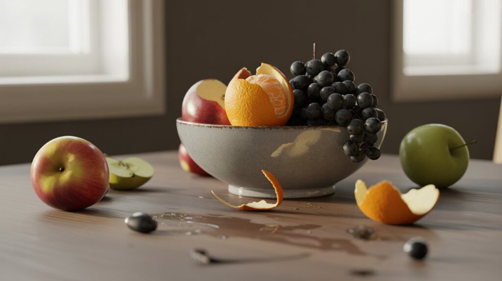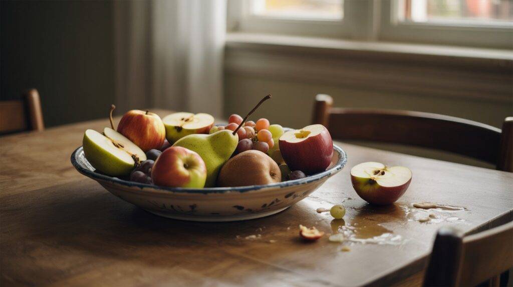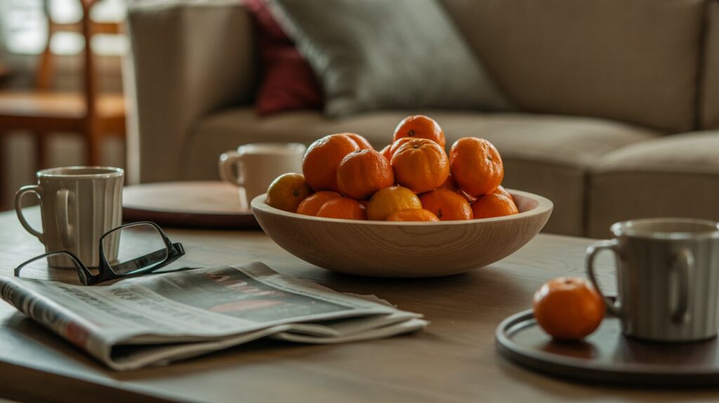 It’s a small thing, but it changes how the space feels. Nothing arranged. Nothing moved around too much. Just fruit in the right place, quietly doing its job.