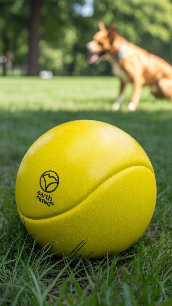 The Earth Rated Dog Ball is a bright, bouncy fetch toy made from natural rubber. Yellow is the second most visible color for dogs, so this ball stands out clearly on grass, sand, or carpet.