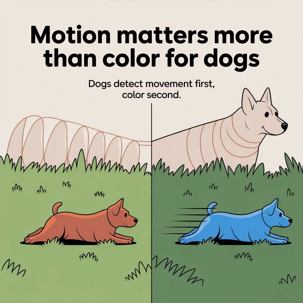 Here’s something a lot of people miss. Dogs evolved to track movement first and color second. Their ancestors were hunters who needed to spot a running rabbit or a fleeing deer. So even if a toy is the perfect blue color, if it’s sitting still, your dog might not care.