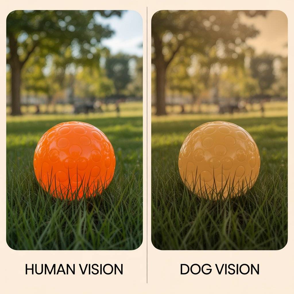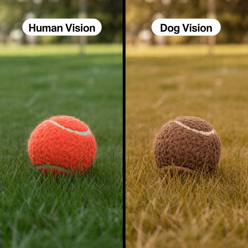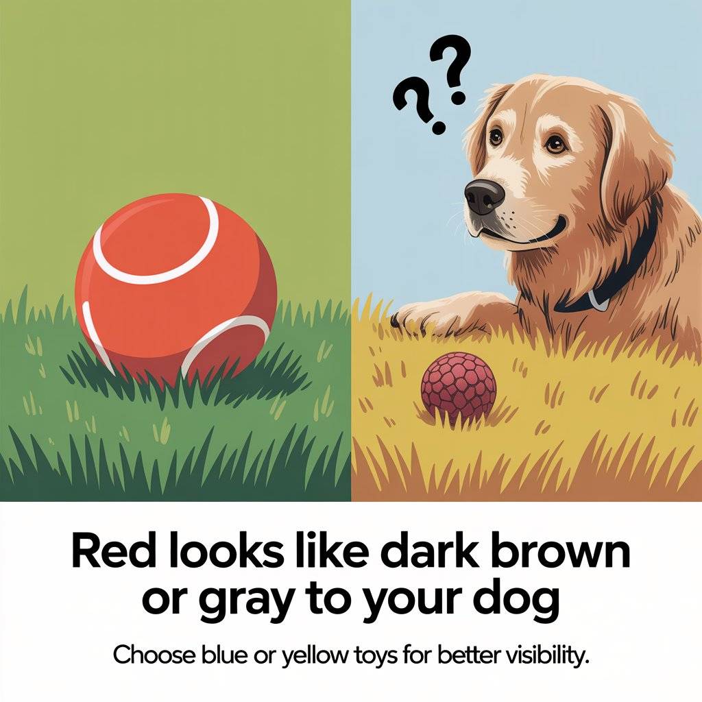 Here’s where most people get tripped up. That beautiful red ball you bought? Your dog doesn’t see red at all. To a dog, red objects look like a muddy brown or a dark gray. On green grass (which dogs see as yellowish‑brown), the red toy practically disappears.