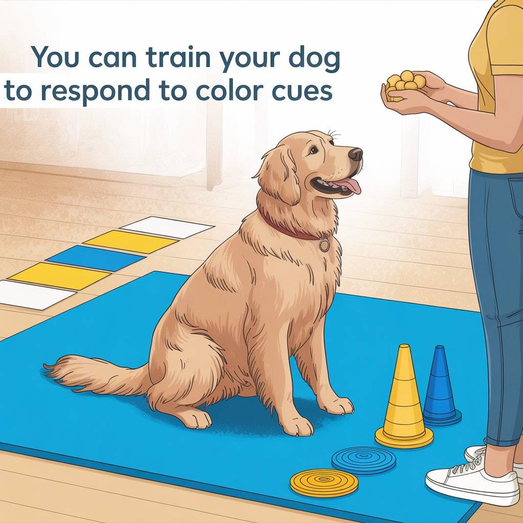 Even though dogs see fewer colors than we do, you can still use color as a training tool. Stick to blue and yellow for best results. Your dog can learn that a blue mat means “sit here” or a yellow cone means “go around.”