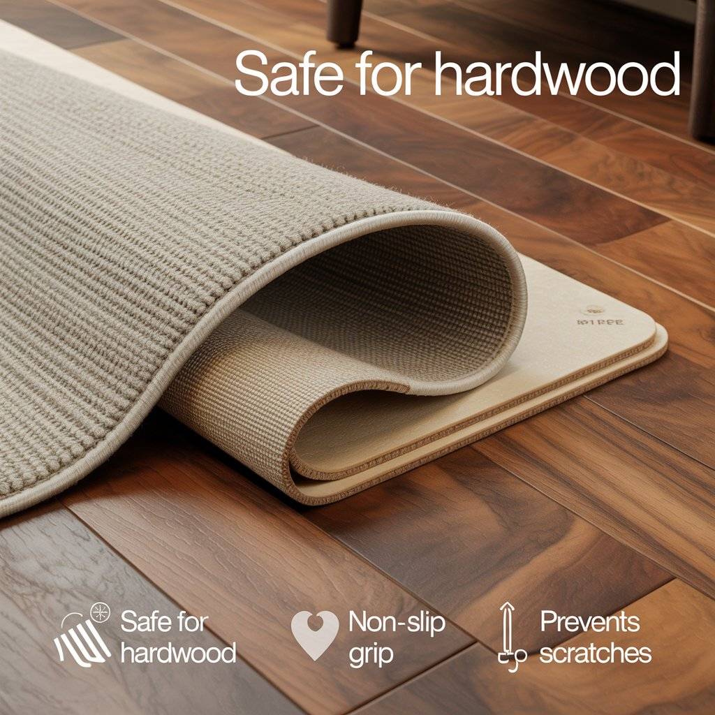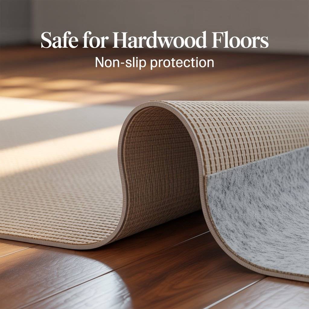 Some rugs come with a natural rubber backing that provides excellent grip directly on hard floors. Natural rubber is safe for most floor finishes and won’t trap moisture like some synthetic backings. This product can help you skip the separate rug pad if you’re looking for simplicity.