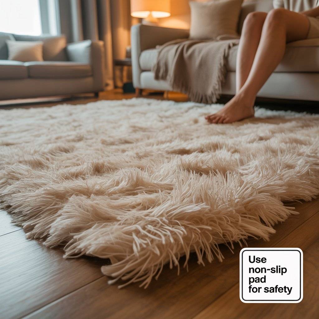 But there’s a safety consideration: thick shag rugs can be a tripping hazard if not placed carefully, especially in high-traffic areas.