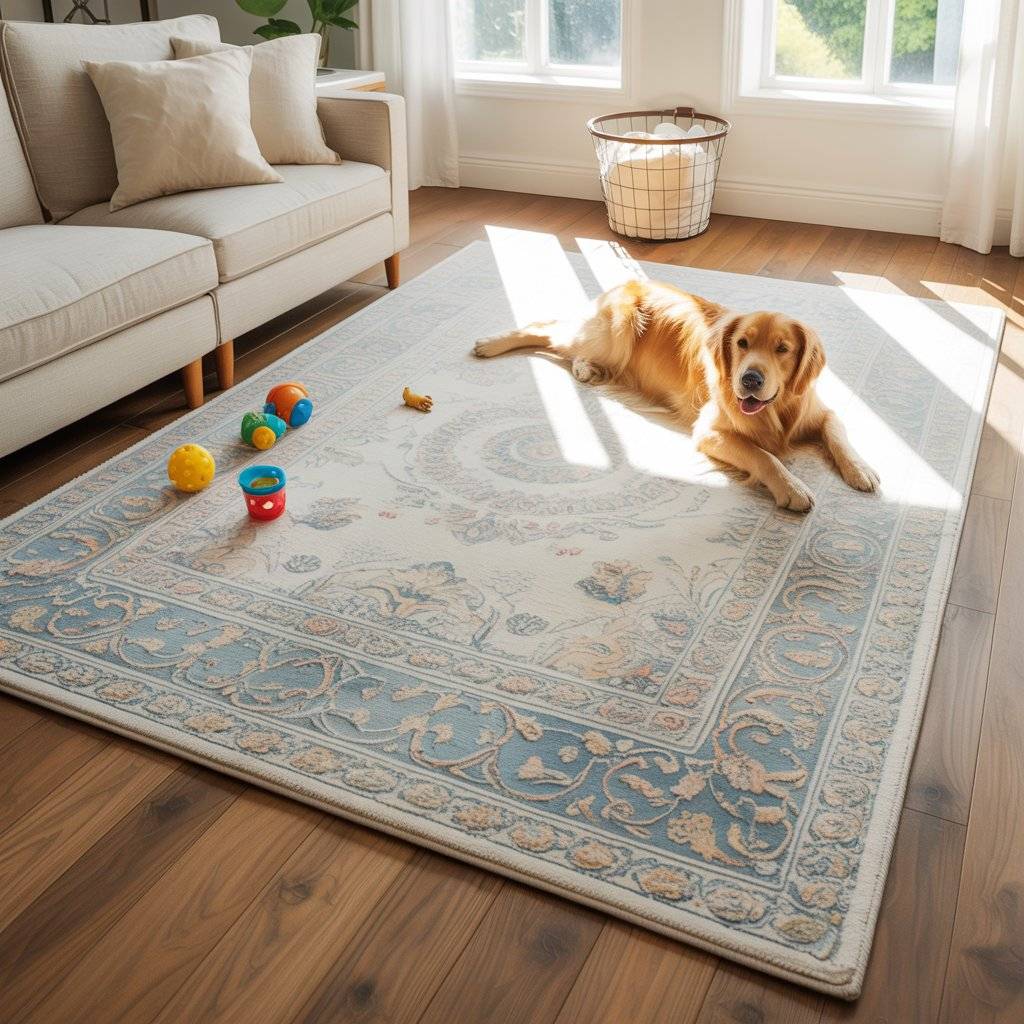 Wool is widely considered the gold standard. It’s durable, breathable, naturally stain-resistant, and gentle on floor finishes. Cotton and polypropylene are also good, more affordable options.